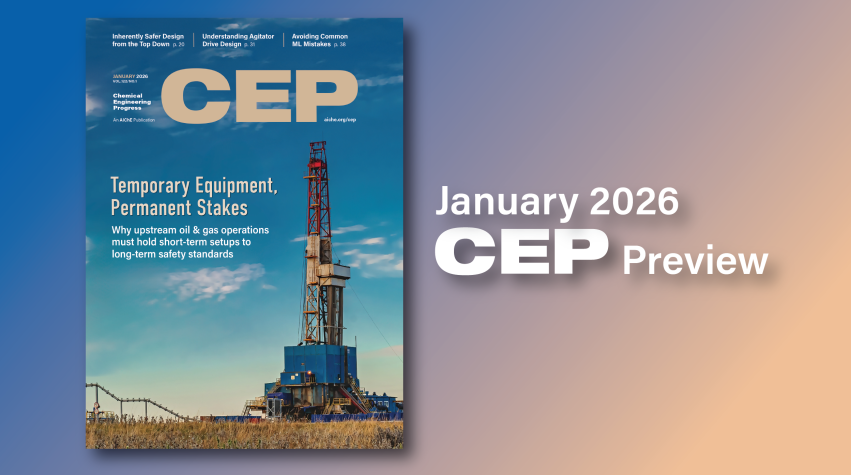 The January 2026 issue of CEP features a cover story on temporary equipment. Risk assessments for temporary equipment have typically been addressed using qualitative or heuristic means, compared to the data-driven approach used for permanent equipment. However, given the volume and relative complexity of temporary equipment being used at many sites, the associated risk may be higher than originally thought.